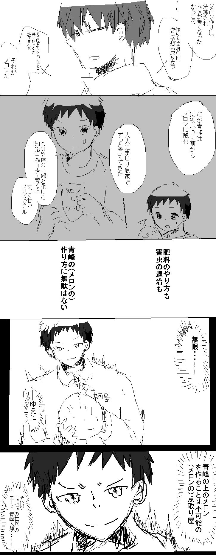 黒子のメロンです(←)。ごめんなさい。よくよく考えてみればメロンって育てるのって結構時間掛かるのでこいつら1年に1回しか勝負できないんじゃない?・・・と、思います。