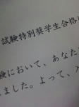 一校受験だったんだって!定員が80人くらいなのに対してなんと、受験者は100人越!管理人さんは国語以外は余裕なそうでしたよ!入試前も勉強30分しかやっていなかったみたいだし・・・。一体、その自身はどこから来るのかなぁ・・・?う~ん。